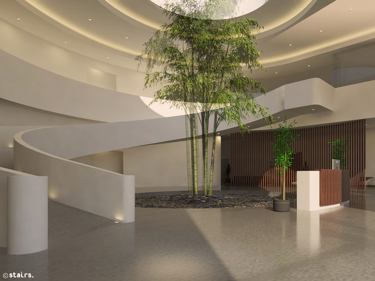 Long widespread concrete breath-wall covered most of the façade of this factory along with glass centered box in the center. Aim to create interior space cool and bathed in a bright diffused natural light highlighted by a phenomenological play of shadow and light along the circulation spaces in the late afternoon. Through this approach even a material with a cold nature is utilized to create a warm, peaceful space.